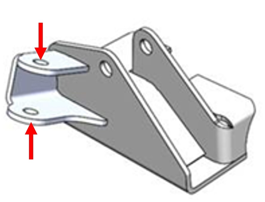 Measure the gap (red arrow) between the top and bottom of the steering stabilizer bracket to determine the required kit